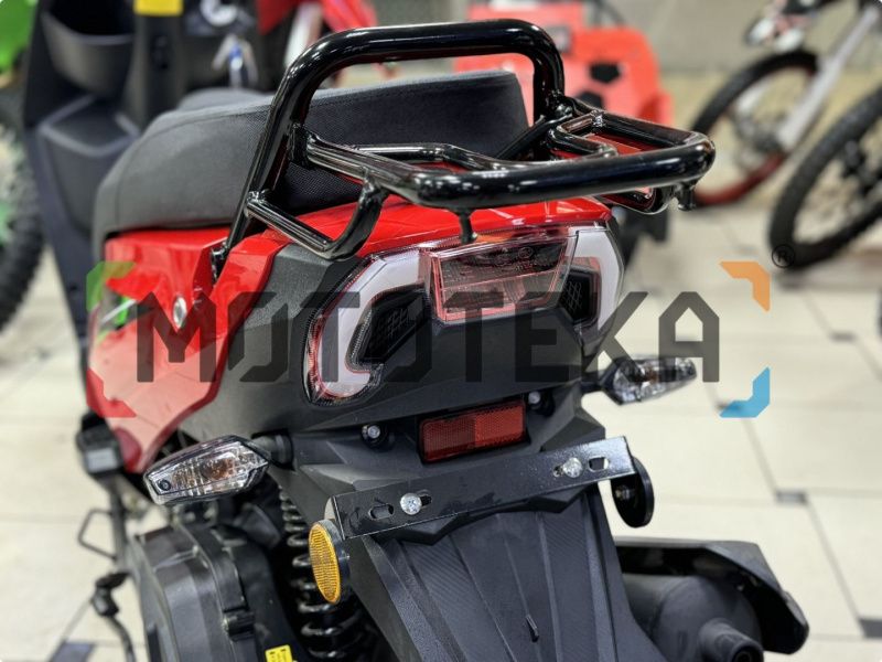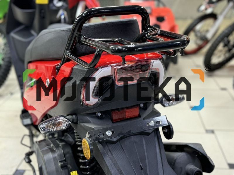 - Крепкий металлический багажник, на который можно установить багажный кофр.