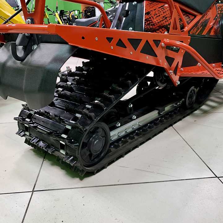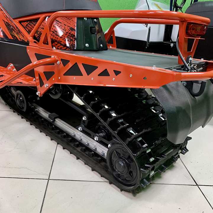 Задняя подвеска с регулируемым ходом и жесткостью. Тоннель гусеничного блока изготовлен из стали 1.5 мм с усиливающими накладками в местах наибольших нагрузок