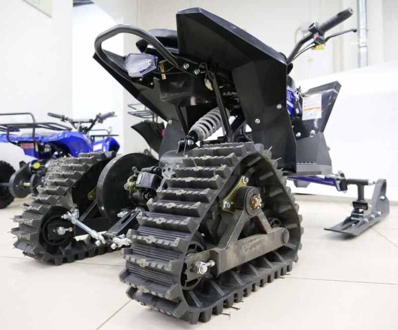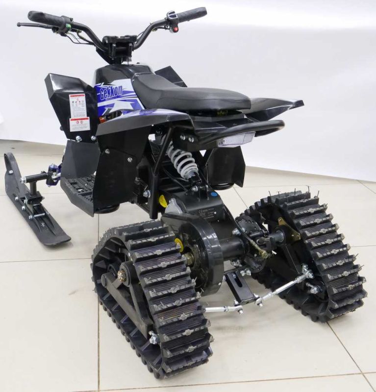 Преимущества Квадро снегоход (снегоцикл) детский электрический Motax (Мотакс) Gekkon Snow 1300W черный/синий (машинокомплект):