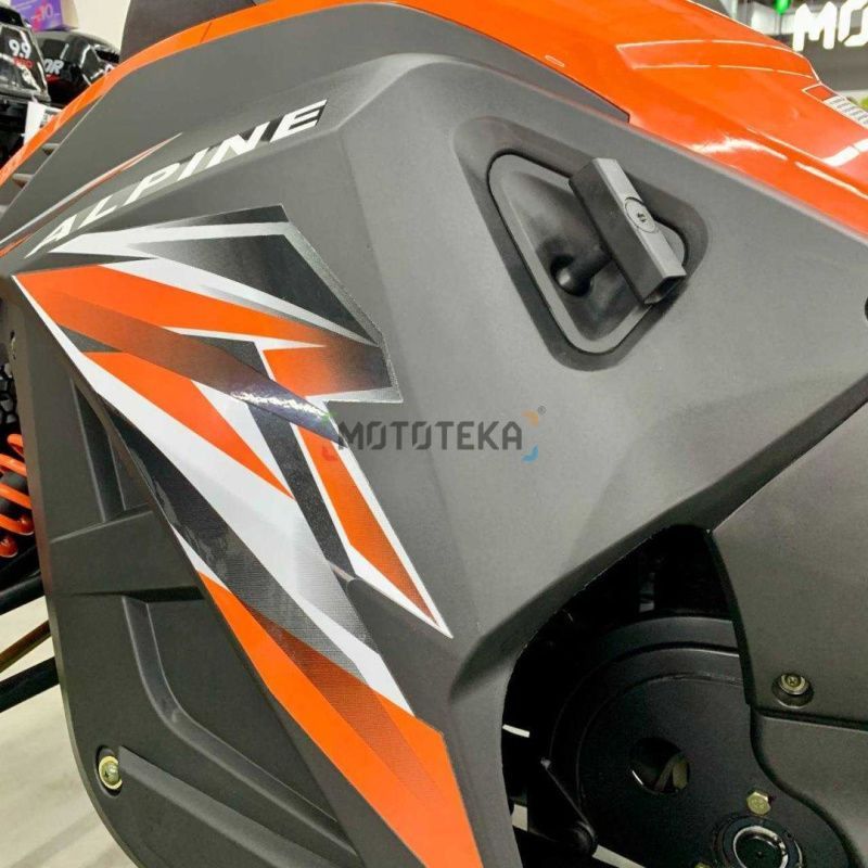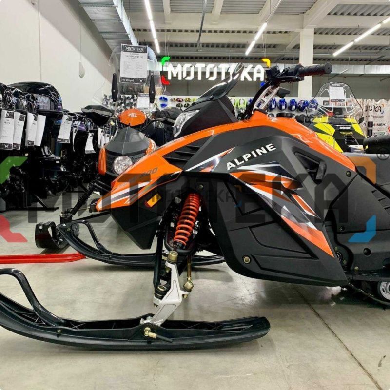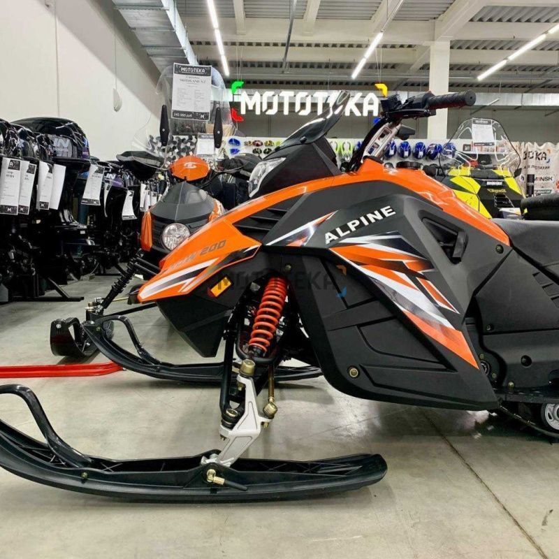 ALPINE 200 обладает несравненной проходимостью благодаря высокому клиренсу, а его мощный 161QMK двигатель готов превратить любую горку в амфитеатр виртуозных трюков и скоростных испытаний. Этот снегоход - настоящий биотоп для яростных катаний, где только вы являетесь хозяином снега.
